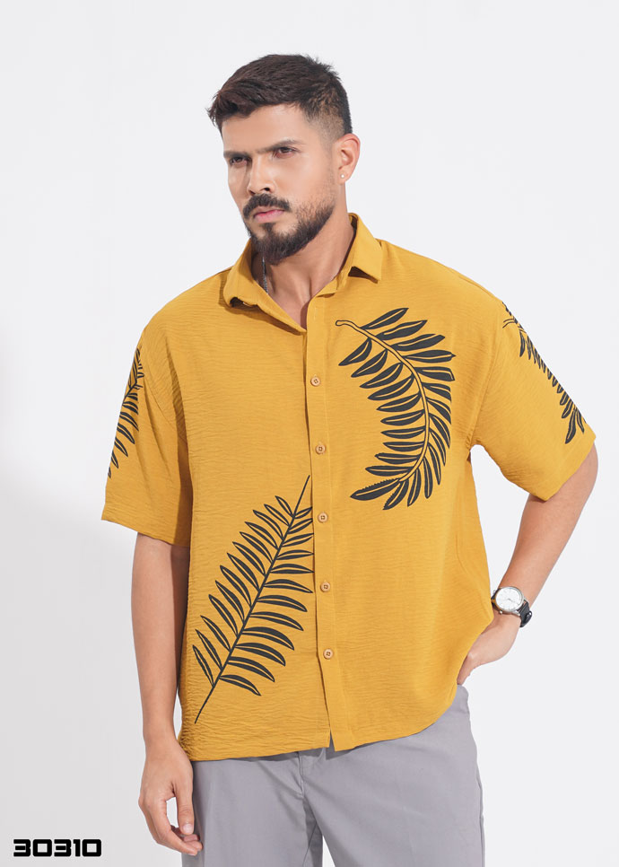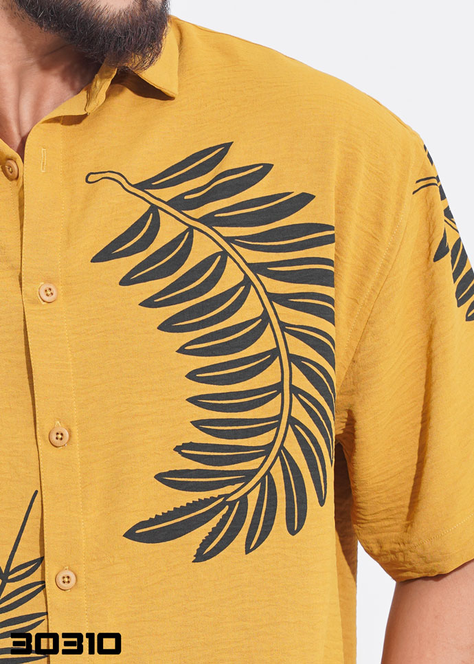 / Tropical leaf Half Shirt – Yellow