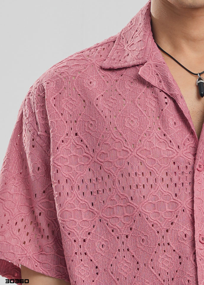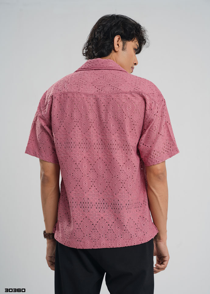 Velour Patterned Half Shirt – Dusty Rose