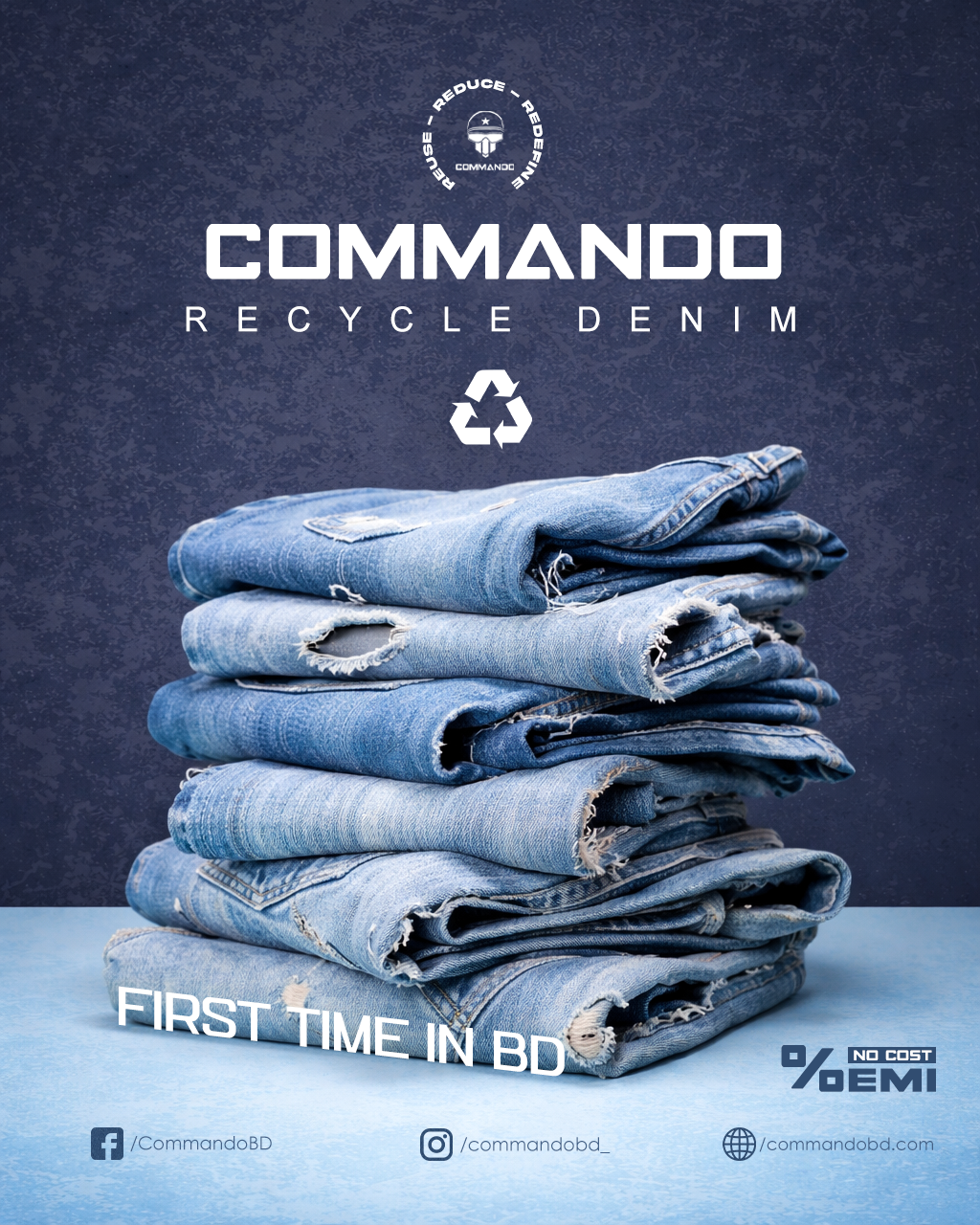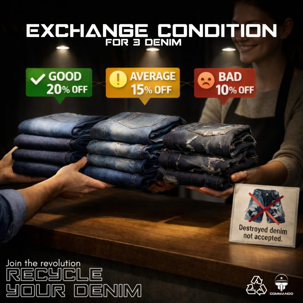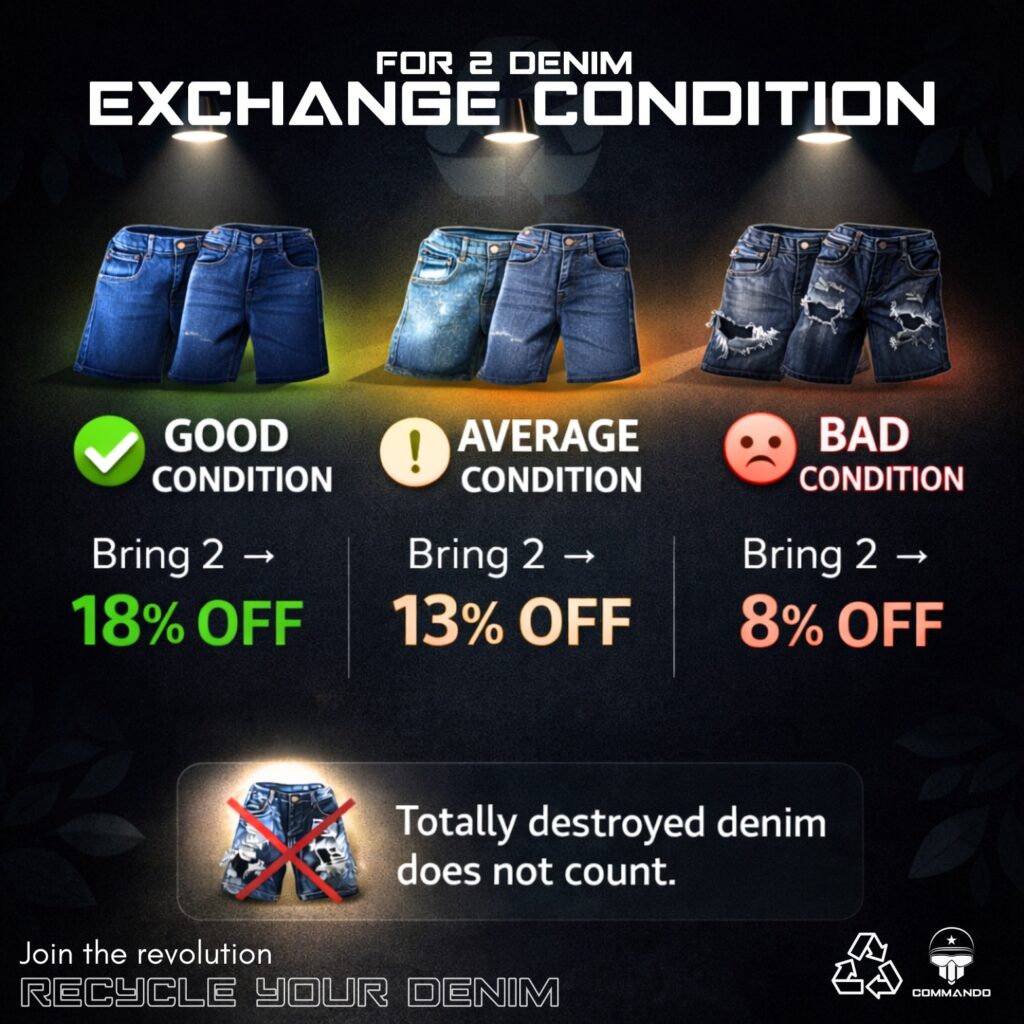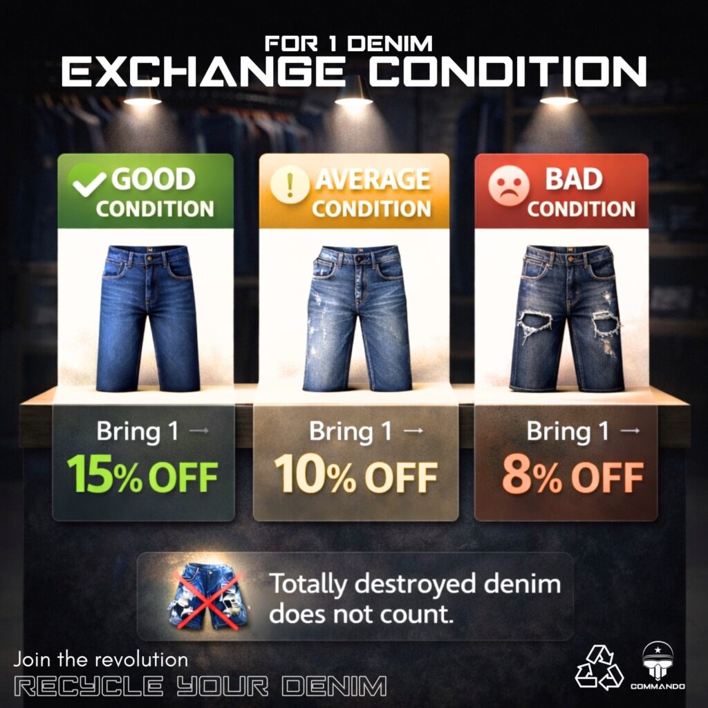 Don’t throw away your old jeans, bring them to Commando BD and upgrade your style today with 0% EMI facility.